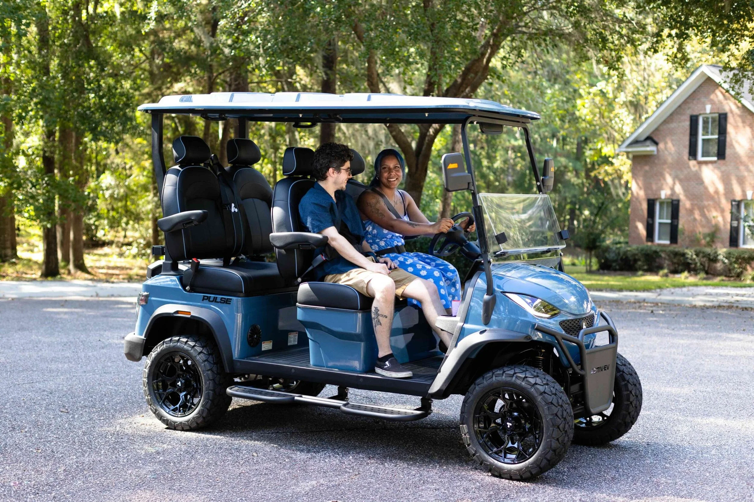 The ActivEV Pulse: a modern, street-legal electric golf cart engineered for both style and performance. Equipped with luxury features, all included—no upgrades required—the Pulse redefines what you expect from a neighborhood vehicle. Whether you’re cruising around your community, heading to the pool or beach, or turning heads downtown, this cart delivers luxury, reliability, and fun without the luxury price tag.