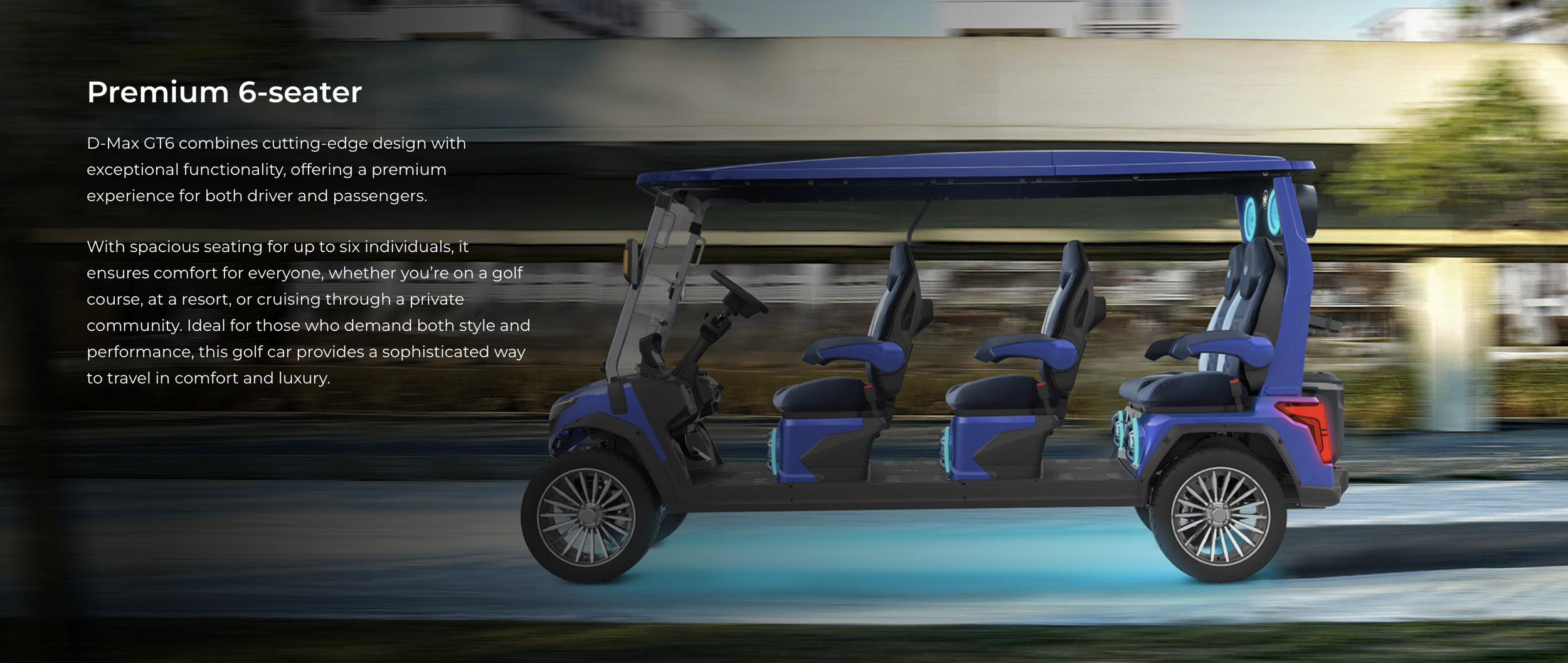Discover the epitome of luxury and style with the trendsetting 6-seater LSV, D-Max GT6, designed for the discerning rider seeking both comfort and class. This vehicle boasts a sleek, modern design, enhanced by premium materials and cutting-edge technology.