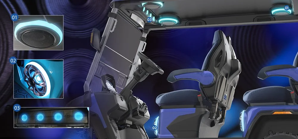 ● Surrounding Sound System with Seat Bucket Speakers, Roof-mounted Speakers and Dual Soundbar