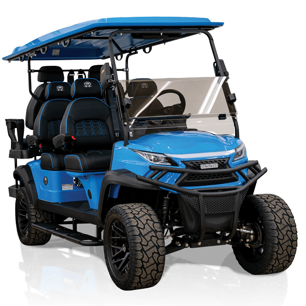 Venom EV golf carts come equipped standard with a105 Ah LiFePO4 Lithium Eco Battery with the option to upgrade to a 160 Ah Eco Battery. All purchases come with an 8 year warranty provided by Eco Battery.